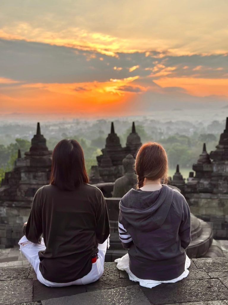 Pukul 04.30 perjalanan menuju Candi Borobudur dimulai dengan shuttle yang telah disiapkan menuju drop off (ex Manohara). Scanning wristbrand di area pintu masuk candi. Mengunjungi Candi Borobudur hingga lantai 9 untuk menikmati sunrise. Pemandu wisata akan menceritakan Candi Borobudur secara detail. Dapat mengunjungi lorong-lorong candi setelah sunrise jika masih ada sisa waktu.